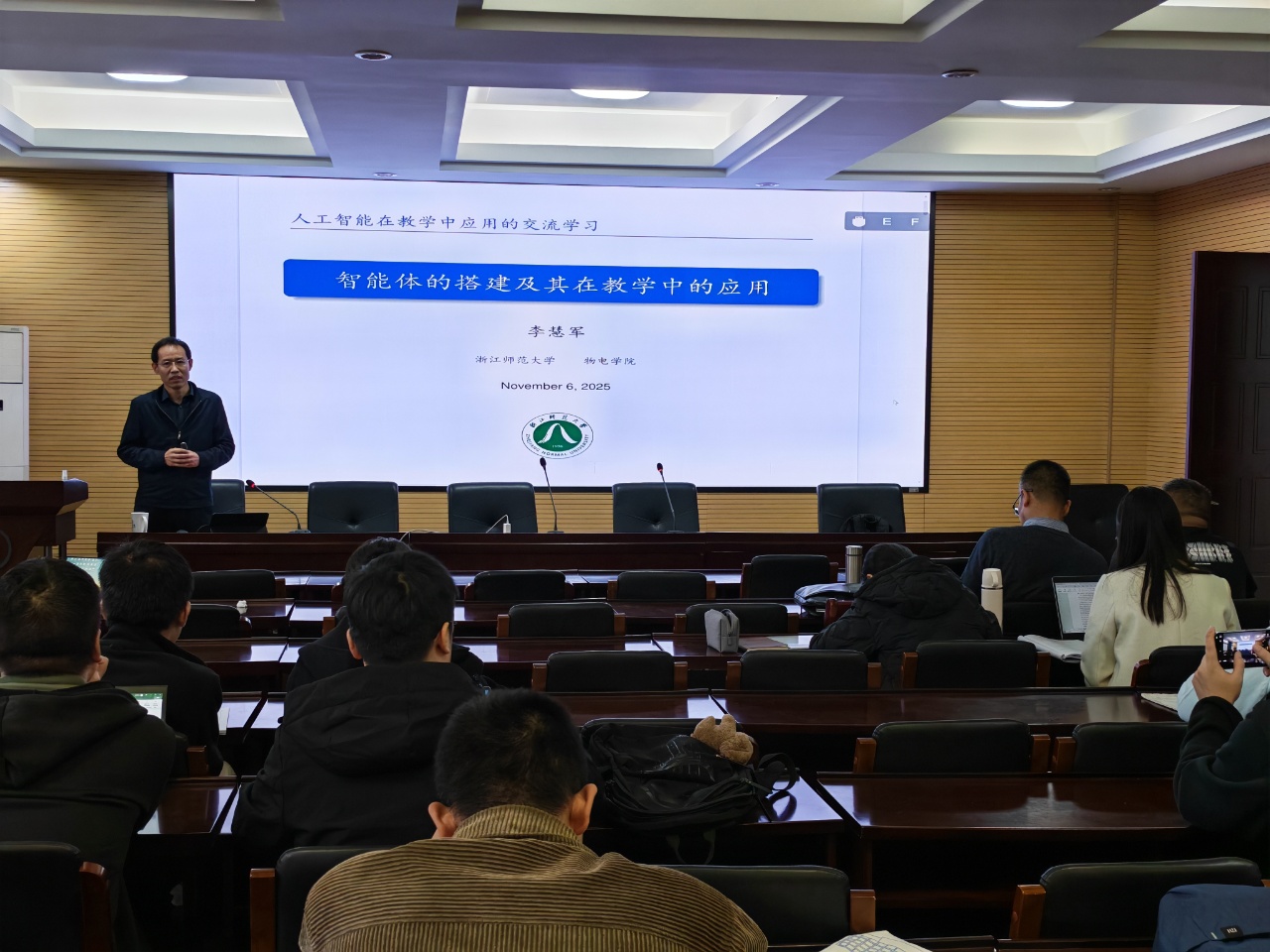 ,在教师发展论坛上作了题为《智能体搭建及其在教学中的应用》的专题报告。本次报告聚焦人工智能技术赋能教育的前沿实践,吸引了众多教师积极参与。
